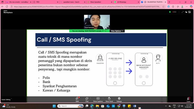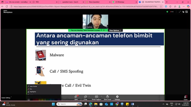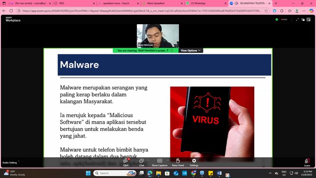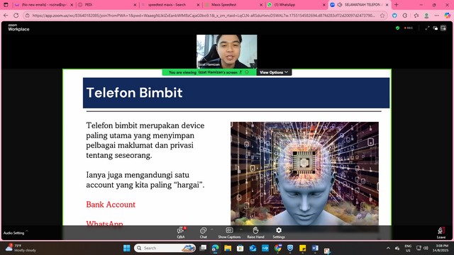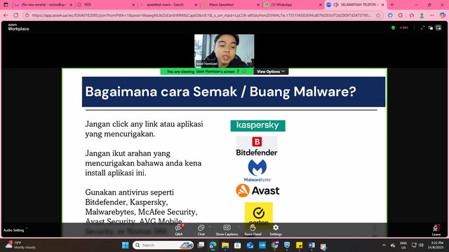 15 Ogos 2025 | Aktiviti TerkiniPada Khamis, 14 Ogos 2025, Pusat Sebaran Maklumat Nasional (NADI) Kampung Quop telah menyertai Program NADI X Cybersecurity iaitu Webinar Selamatkan Telefon Anda Daripada Ancaman yang diadakan secara dalam talian menerusi aplikasi zoom-meeting. Seramai dua orang peserta yang telah menyertai program webinar ini yang dijalankan selama satu jam tiga puluh minit iaitu bermula pada pukul 3.00 petang sehingga 4.30 petang.